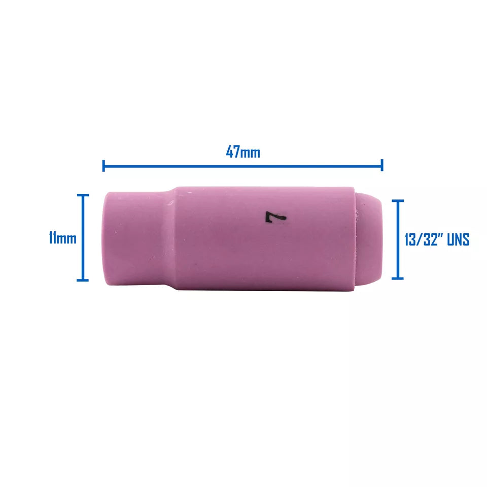 PN 10N47QWS - Welding Supply Solutions$3.09 / each| /SR17/18/26 TIG Ceramic Nozzle #7 (11mm, 47mm Long) - Premium Welding Accessory The SR17/18/26 TIG Ceramic Nozzle #7, with a diameter of 11mm and a ...