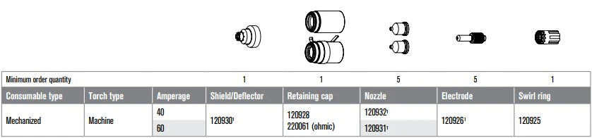 PN 120932Hypertherm$80.50 /pack of 5$16.10 / each| /Hypertherm® 120932 40 Amp Shielded Nozzle For Powermax1000/1250 T60/60M/80/80M Plasma Torches Use your Powermax to its full capability with the Hy...