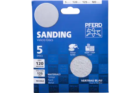 PN 45017905PFERD$6.15 / each| /POS uni. alu. oxide hook and loop-backed abrasive disc KSS ECO AC dia. 125 A120 with non-stick coating without extraction holes for eccentric orbit...